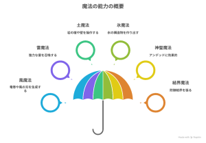 - 結界魔法: 自身の周囲に強力な防御結界を張ることができます。この結界は物理攻撃だけでなく魔法攻撃も防ぎ、敵意ある者からの攻撃を完全にシャットアウトします。