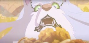 物語の序盤、ムコーダが作る異世界の食材と「ネットスーパー」の調味料を使った料理の匂いに引き寄せられて姿を現したフェル。
